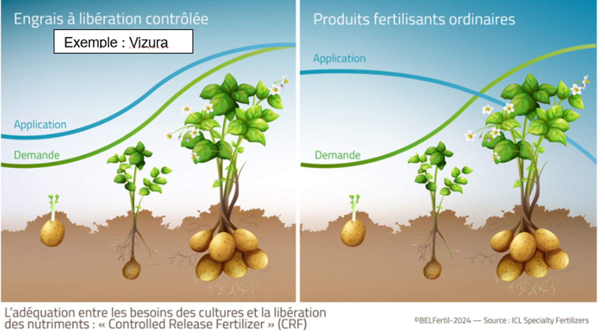 Comme le montre l'illustration, les cultures de printemps, comme la pomme de terre, n'ont pas besoin de leur azote immédiatement.