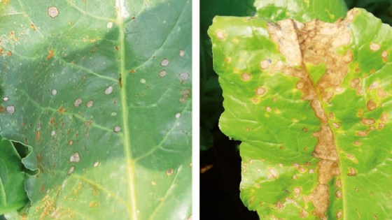 En betteraves, la décision de traiter avec un fongicide repose sur l'observation régulière des parcelles, le service d'avertissement et les seuils d'intervention de l'IRBAB pour les quatre maladies fongiques foliaires principales de la betterave.
