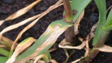 In tegenstelling tot kafjesbruin is een aantasting van DTR vrijwel nooit op de bladoksels terug te vinden. Verder lijken de aantastingsbeelden van beide schimmels vooral bij oudere infecties, ookonder de microscoop, sterk op elkaar. Kogelvormige vruchtlichamen worden ook gevormd door Mycosphaerella graminicola en door de zwakteparasieten Ascochyta ook wel Didymella genoemd. De vruchtlichamen van de ascochyta-schimmel variëren in kleur van wit, geel, geelbruin tot zwart. Als ze geelbruin van kleur zijn, dan zijn ze nauwelijks te onderscheiden van de pycnidiën van kafjesbruin. De vruchtlichamen van dedidymella-schimmel zijn kogelvormig, hebben geen opening, zijn doorschijnend witgeel en in de meeste gevallen maar half zo groot als de pycnidiën van kafjesbruin.